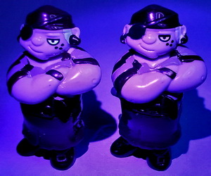 links: weiße Streifen vom Hemd und Mund unter UV leuchtend