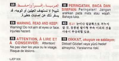 | Beiliegender Warnhinweiszettel: | |