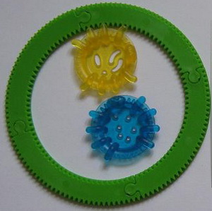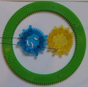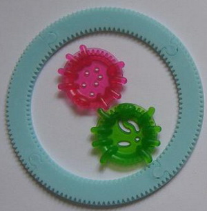 Spirograph hellblau, Tiere grün und rot