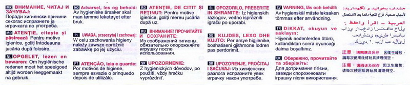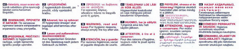 DC232 TAZ teilweise mit Zuatzwarnzettel "Aus hygienischen Gründen ist das Spielzeug nach jedem Gebrauch zu leeren." |