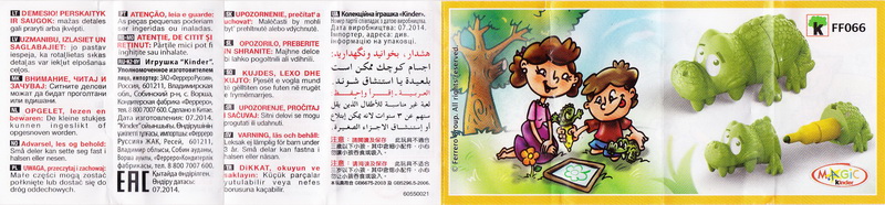 | 2. BPZ zu FF066 mit angehängtem Warnhinweis 60550301: Vorderseite ohne LEC 001 dafür rechts unten mit Nummer 60550301, Rückseite Nummer 60550301 Herstellungsdatum RU-KZ-BY und UA 07.2014 | |