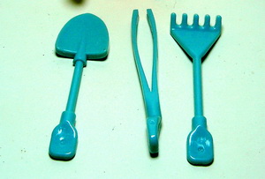 Insekt orange mit Gartengeräten