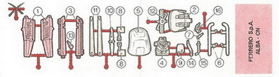 4 verschiedene BPZ - Teileübersicht rechts "FERRERO S.p.A. ALBA -