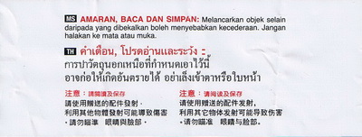 Zusatzwarnhinweis Vorderseite Schrift klein | Rückseite gleiche Größe aber Druck seitenverkehrt |
