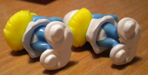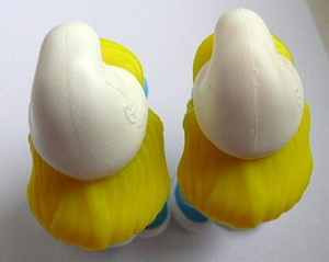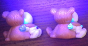 UV-Variante: links= Schlumpf Schwänzchen nicht leuchtend rechts= Schlumpf Schwänzchen leuchtend Dank an Ronny Lubatsch für Info und Bild! |