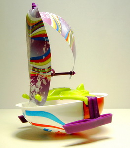 Segelschiff Deck grün, Ausleger lila
