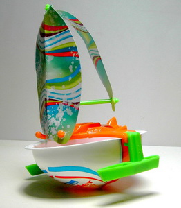 Segelschiff Deck orange, Ausleger grün