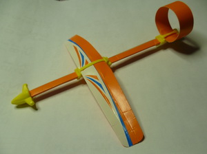 Segelflieger mit Papier- statt Plastikflügel. Abweichende Flügelbefestigung.