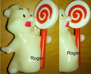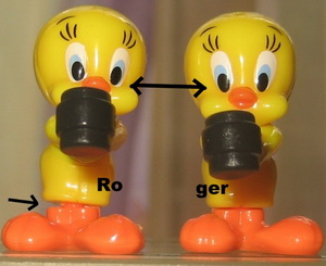 Variation: links= Mundwinkel beidseitig außerhalb des Mundes bemalt rechts= Normalfigur Dank an Roger für Info und Bild! |