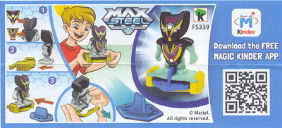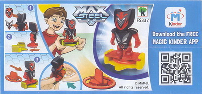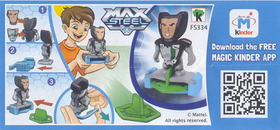 | FS334 Max Steel Sockel hellblau, Scheibe grün | FS335 Figur Sockel gelb, Scheibe lila |