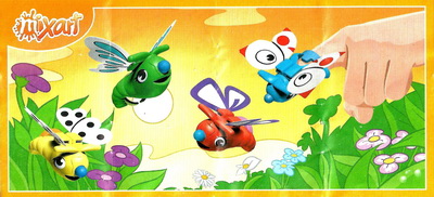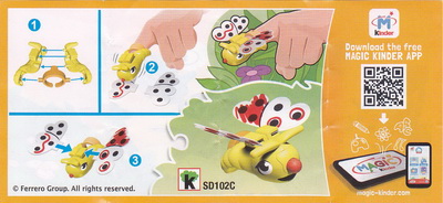 Vorderseite gelb-rot, grün-gelb, blau-gelb, rot-blau Flügel mit "Bemalung" |