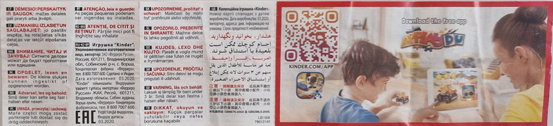 Je Figur eigener Beipackzettel mit angehängtem Warnhinweis 79013142 (Datum 03.2020)