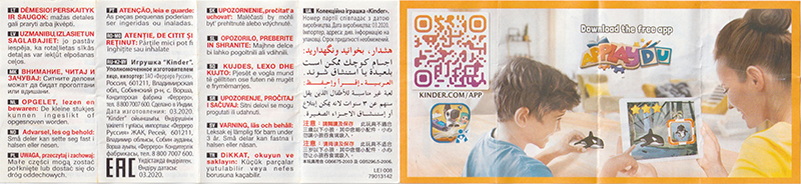 Je Figur eigener Beipackzettel mit angehängtem Warnhinweis 79013142 (Datum 03.2020)