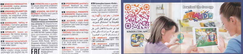 Je Figur eigener Beipackzettel mit angehängtem Warnhinweis 79018856 (Datum 03.2021).